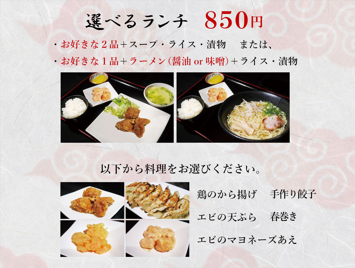 • 中華ランチ950円⇒お昼850円